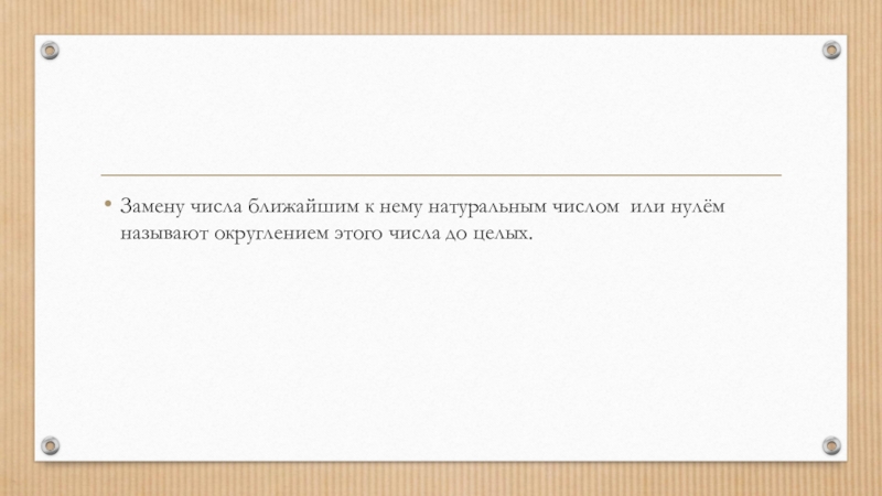 Слайд 3Замену числа ближайшим к нему натуральным числом или нулём называют округлением