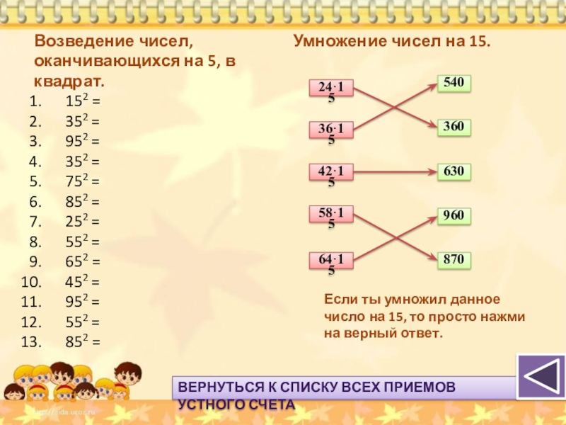 Прием умножения чисел на 15.