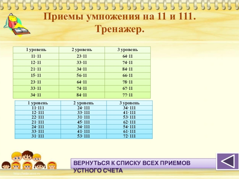 Прием умножения двузначного числа на 111.