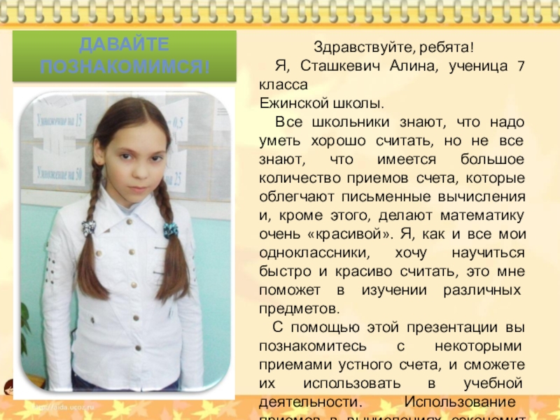 «Знакомство с приемами устного счета».