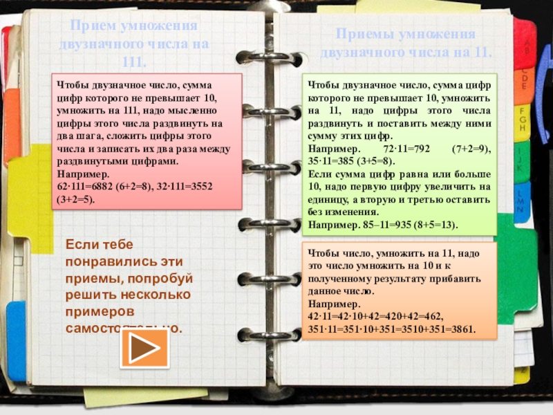 Прием умножения двузначного числа на 11.