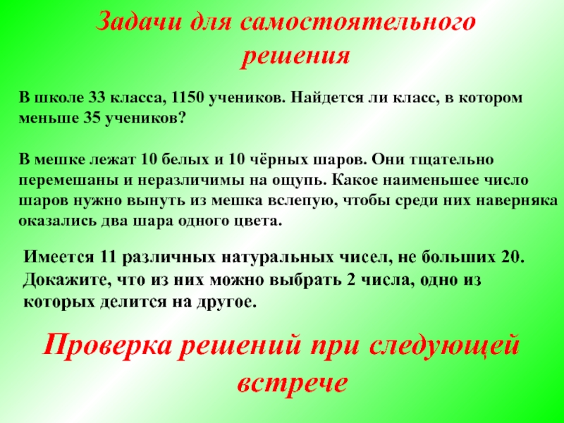 Впрочем, любой здравомыслящий человек, ознакомившись с этими принципами, вынужден их признать. Вот, например, так называемый принцип Дирихле.