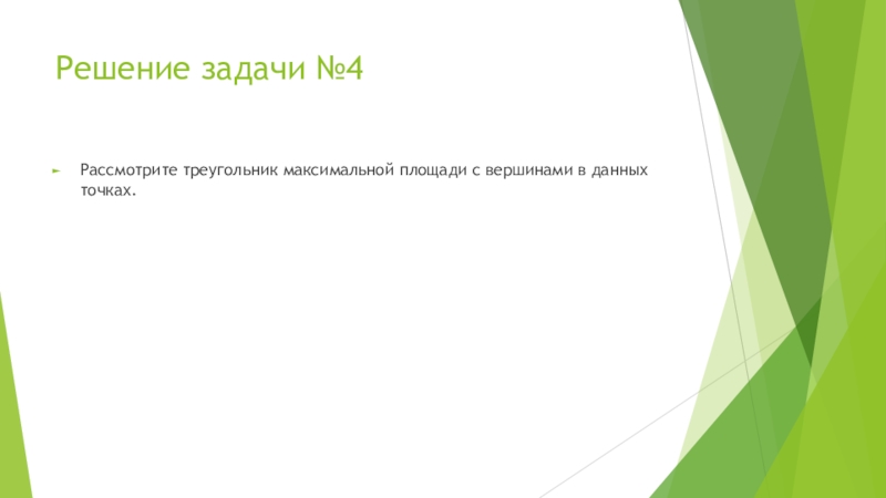 Решение задачи №4Рассмотрите треугольник максимальной площади с вершинами в данных точках.