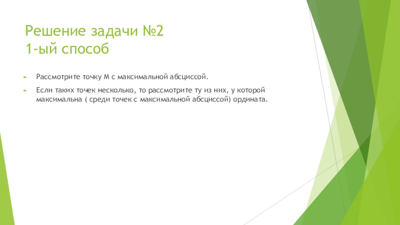 Решение задачи №2 1-ый способРассмотрите точку М с максимальной абсциссой.Если таких точек несколько, то рассмотрите ту из