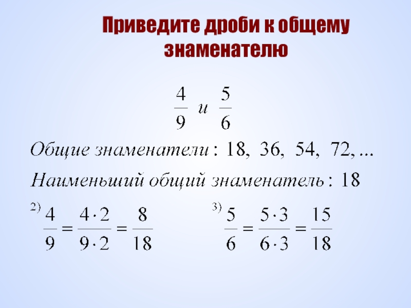 Презентация, доклад по математике на тему приведение дробей к общему знаменателю 5 класс
