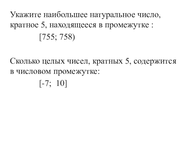 Слайд 15Укажите наибольшее натуральное число, кратное 5, находящееся в промежутке :