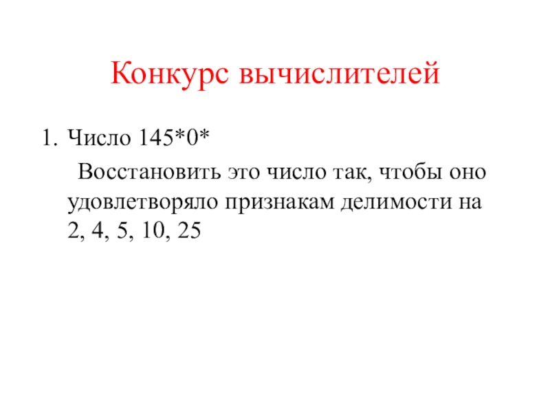 удовлетворяло признакам делимости на 2, 4, 5, 10, 25