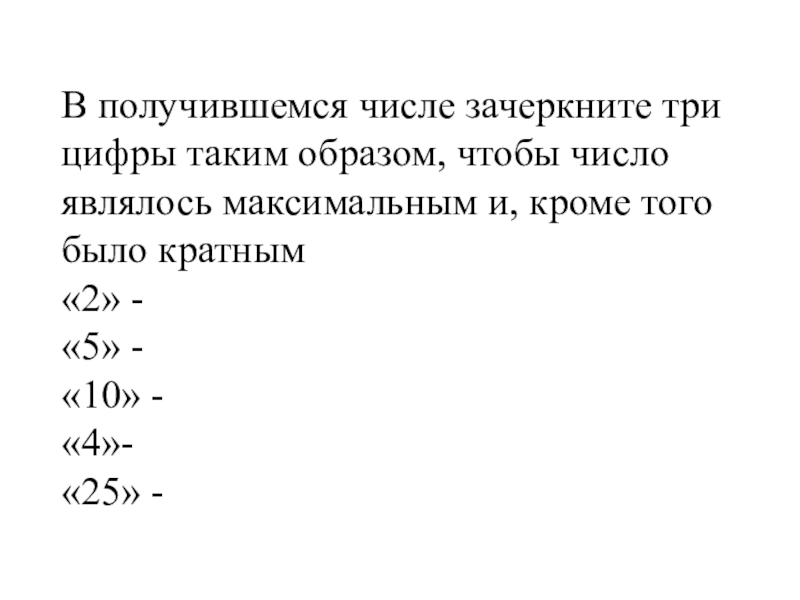 Слайд 9В получившемся числе зачеркните три цифры таким образом, чтобы число являлось