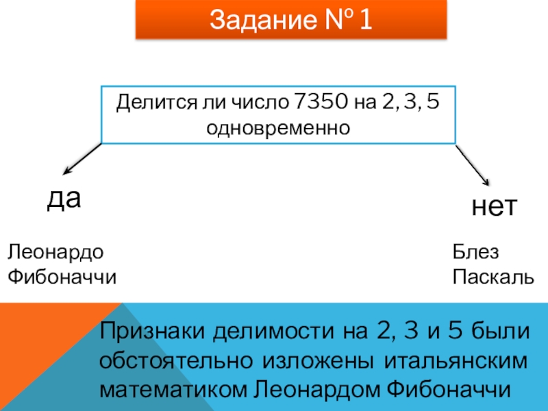 Признаки делимости на 2, 3 и 5 были обстоятельно изложены итальянским математиком Леонардом Фибоначчи