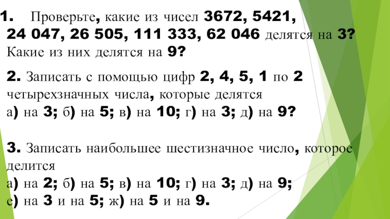 2. Записать с помощью цифр 2, 4, 5, 1 по 2 четырехзначных числа, которые делятся