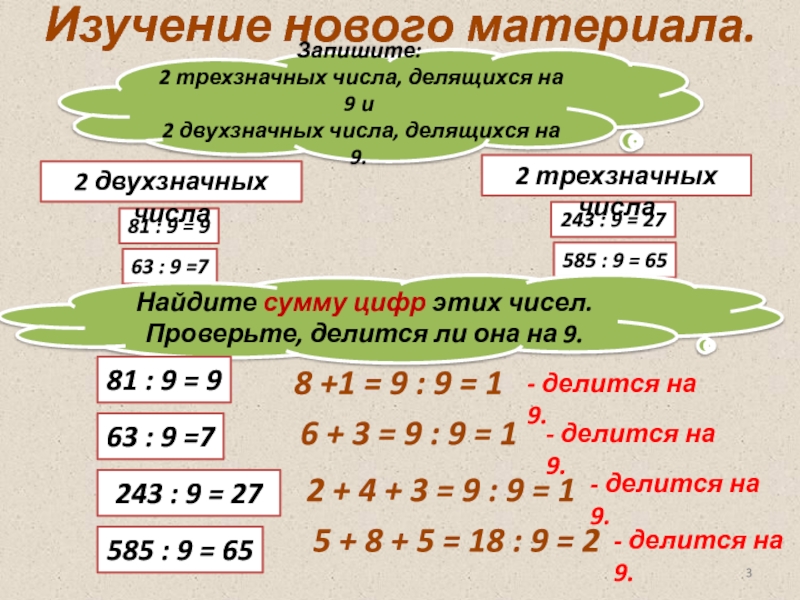 Найдите сумму цифр этих чисел. Проверьте, делится ли она на 9.