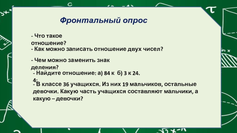 - В классе 36 учащихся. Из них 19 мальчиков, остальные девочки. Какую часть учащихся составляют мальчики, а какую – девочки?