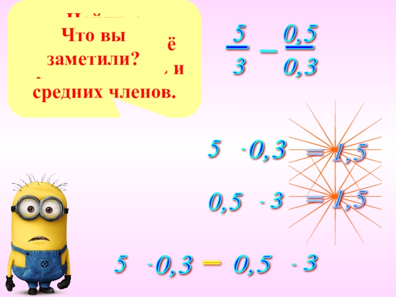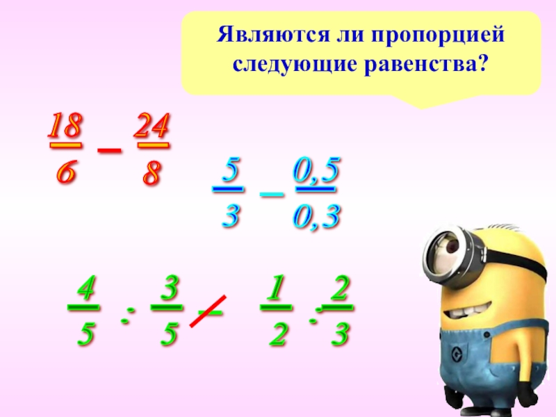 Заменять отношения дробных чисел отношением натуральных чисел.