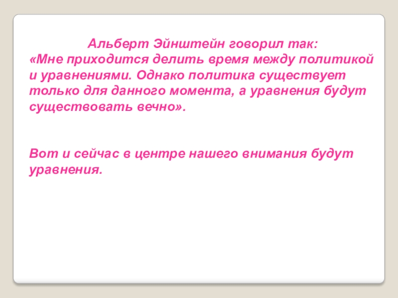 «Мне приходится делить время между политикой и уравнениями. Однако политика существует только для данного момента, а уравнения будут существовать вечно».