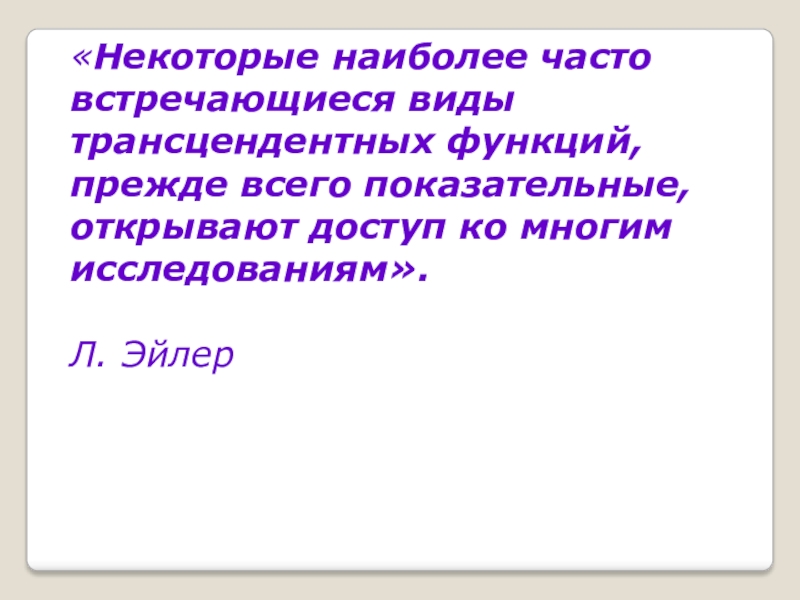 Слайд 9«Некоторые наиболее часто встречающиеся виды трансцендентных функций, прежде всего показательные, открывают
