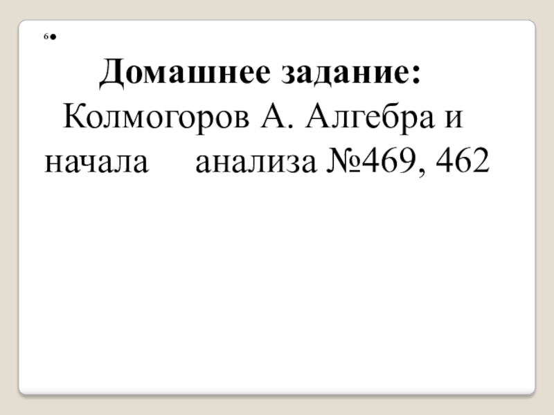 6.    Домашнее задание: Колмогоров А. Алгебра и начала   анализа №469, 462