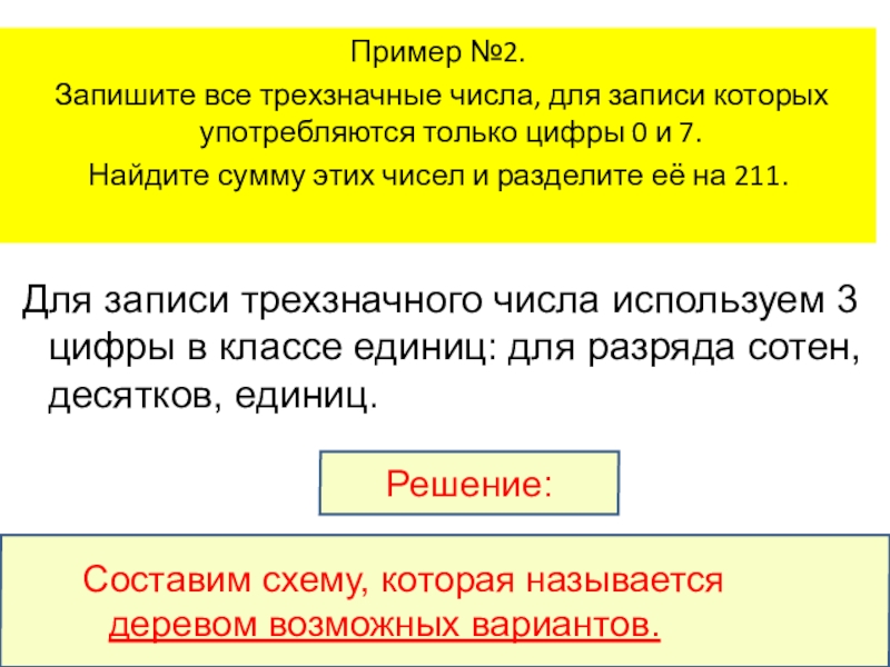 Запишите все трехзначные числа, для записи которых употребляются только цифры 0 и 7.