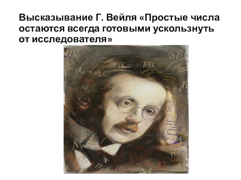 Слайд 2 Высказывание Г. Вейля «Простые числа остаются всегда готовыми ускользнуть от исследователя»