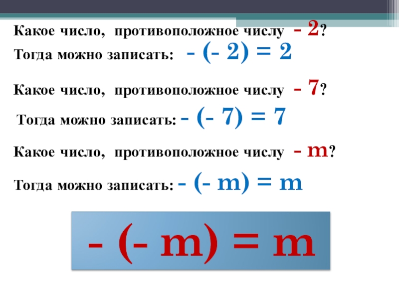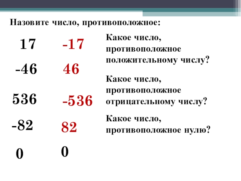 Определение: Два числа, отличающиеся друг от друга только знаками, называются противоположными.