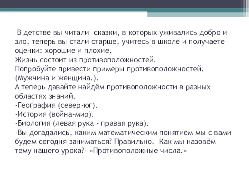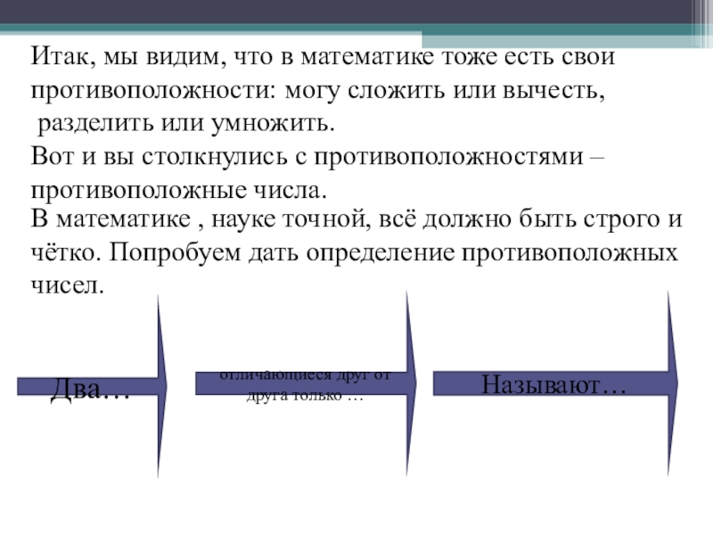 В математике , науке точной, всё должно быть строго и чётко. Попробуем дать определение противоположных чисел.