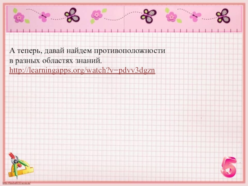 А теперь, давай найдем противоположности в разных областях знаний.http://learningapps.org/watch?v=pdvv3dgzn