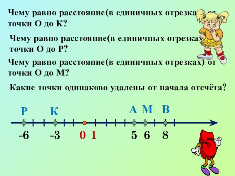 Чему равно расстояние(в единичных отрезках) от точки О до М?