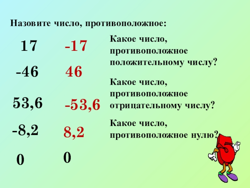 Определение: Два числа, отличающиеся друг от друга только знаками, называются противоположными.