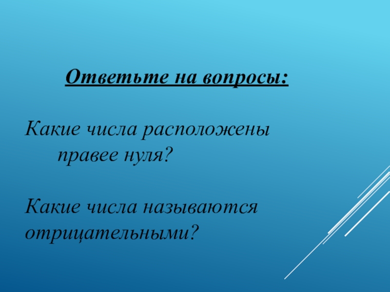 Ответьте на вопросы:Какие числа расположены    правее нуля?Какие числа называются     отрицательными?