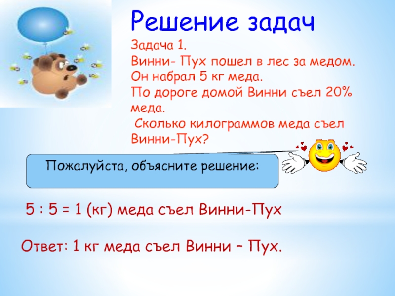 5 : 5 = 1 (кг) меда съел Винни-Пух