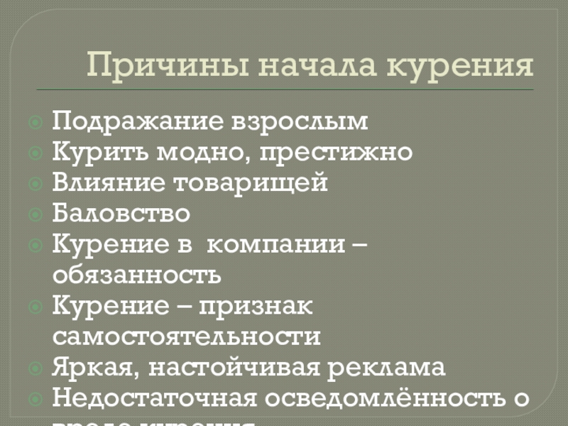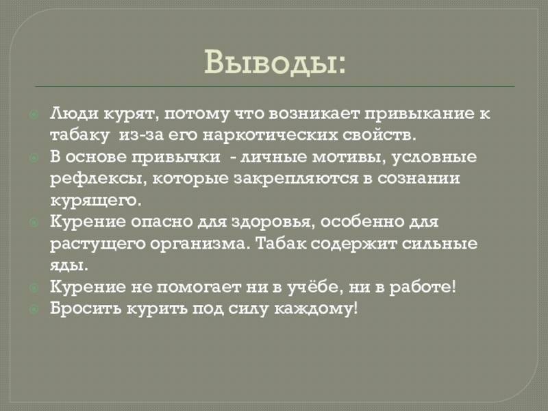 Люди курят, потому что возникает привыкание к табаку из-за его наркотических