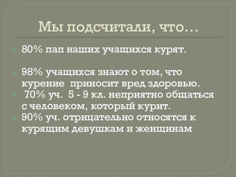 70% уч. 5 - 9 кл. неприятно общаться с человеком, который курит.
