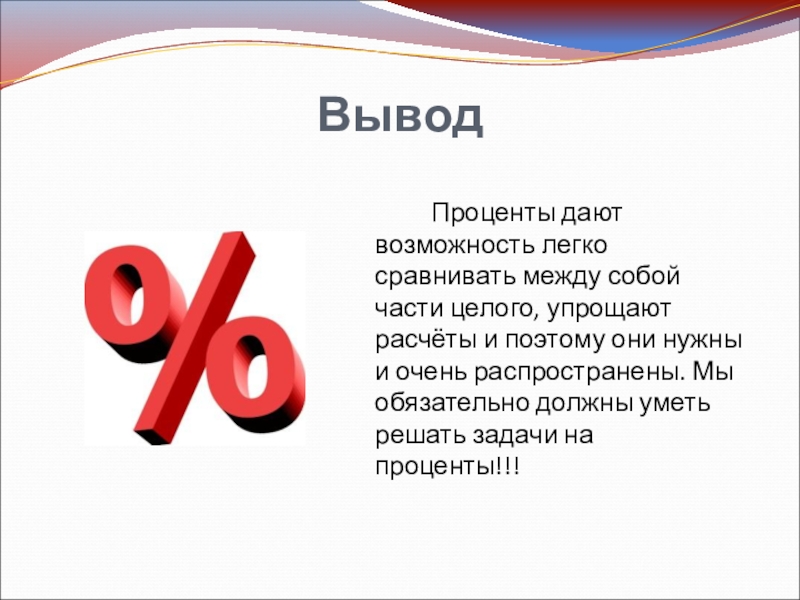 упрощают расчёты и поэтому они нужны и очень распространены. Мы обязательно должны уметь решать задачи на проценты!!!