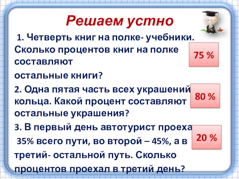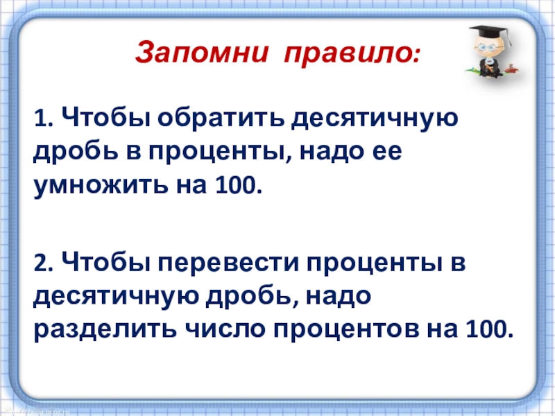 Долгое время под процентами понимались исключительно прибыль или убыток на каждые сто рублей. Они применялись только в торговых и денежных сделках. Затем область их применения расширилась, проценты встречаются в хозяйственных и финансовых расчетах, статистике, науке и технике. Ныне процент – это частный вид десятичных дробей, сотая доля целого (принимаемого за единицу).