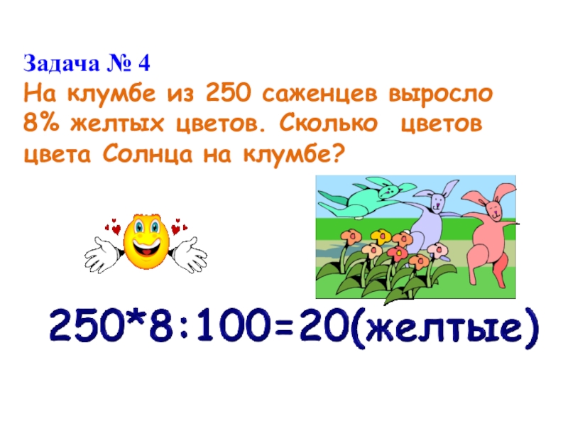 На клумбе из 250 саженцев выросло 8% желтых цветов. Сколько цветов цвета Солнца на клумбе?