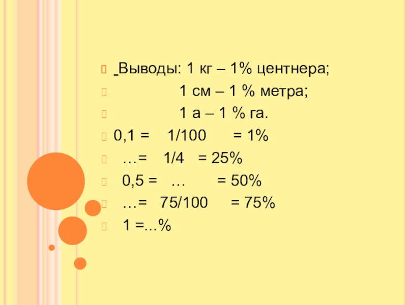 Выводы: 1 кг – 1% центнера;	       1 см – 1
