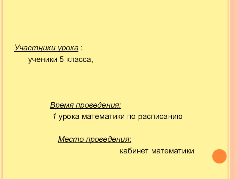 Участники урока : 	 ученики 5 класса,	        	Время проведения: