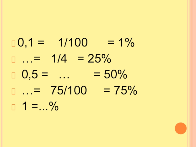 0,1 =  1/100   = 1%	…= 	1/4  = 25%	0,5 =  …
