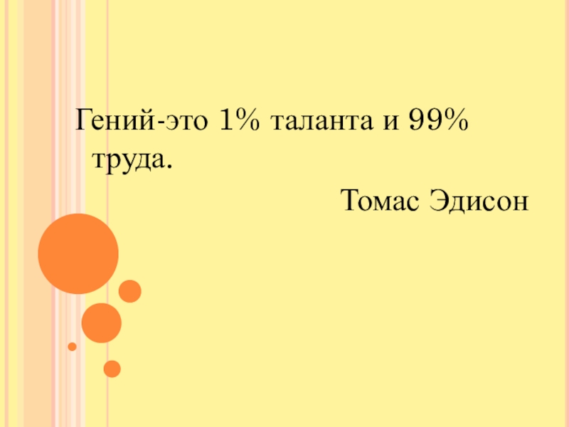 Слайд 4Гений-это 1% таланта и 99% труда.