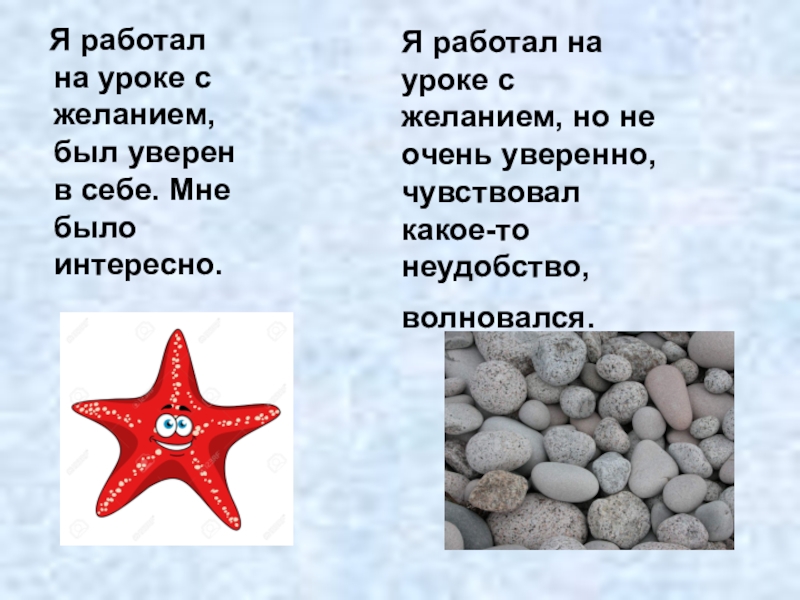 Я работал на уроке с желанием, был уверен в себе. Мне было интересно.