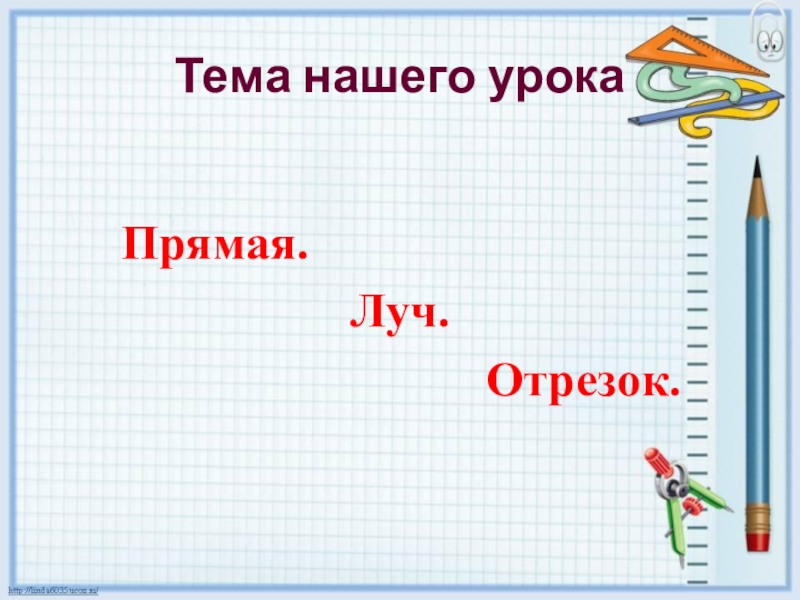 Тема нашего урока   Прямая.Луч.