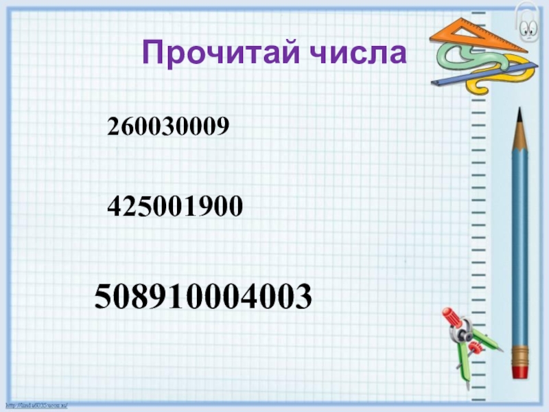 Слайд 2Прочитай числа