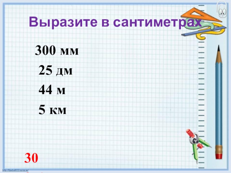 Слайд 3Выразите в сантиметрах
