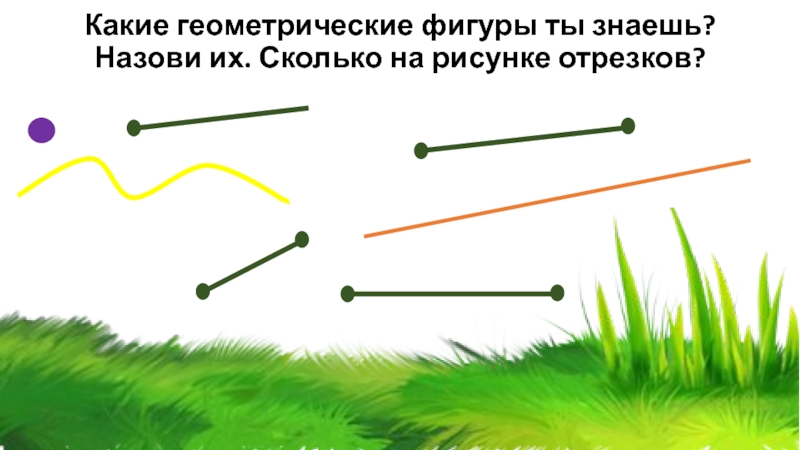Слайд 3Какие геометрические фигуры ты знаешь? Назови их. Сколько на рисунке отрезков?
