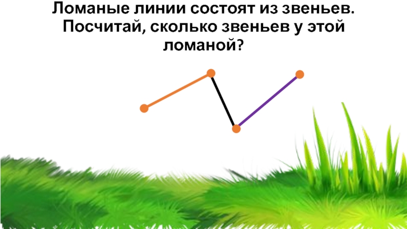 Слайд 5Ломаные линии состоят из звеньев. Посчитай, сколько звеньев у этой ломаной?