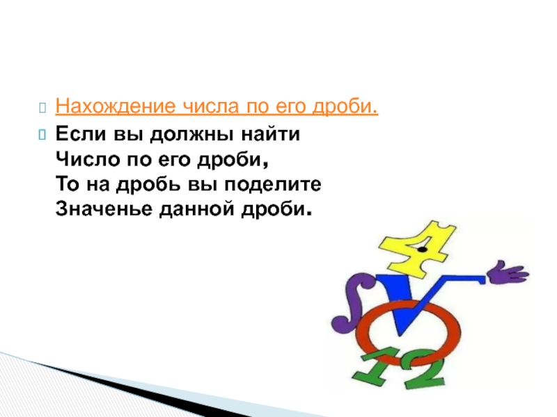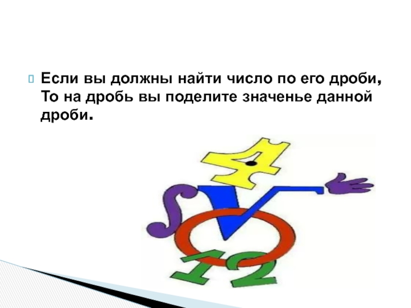 Слайд 8Если вы должны найти число по его дроби, То на дробь вы