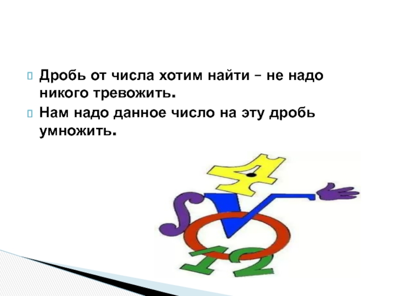 Слайд 7Дробь от числа хотим найти – не надо никого тревожить.