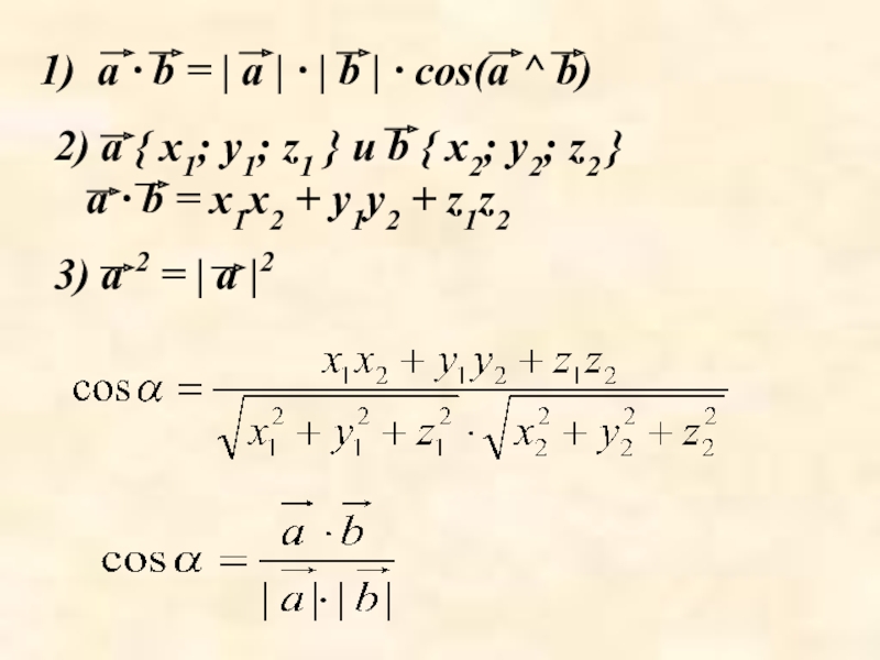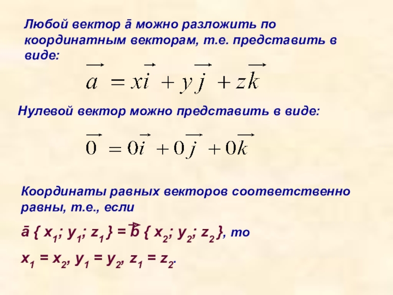 ā { x1; y1; z1 } = b { x2; y2; z2 }, то