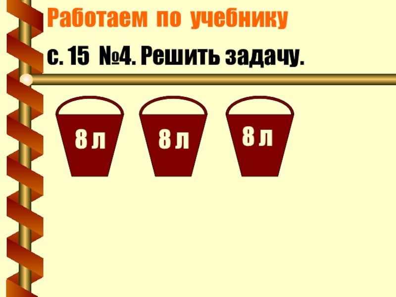 Работаем по учебникус. 15 №4. Решить задачу.8 л8 л8 л