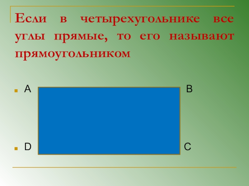 Слайд 2Если в четырехугольнике все углы прямые, то его называют прямоугольником