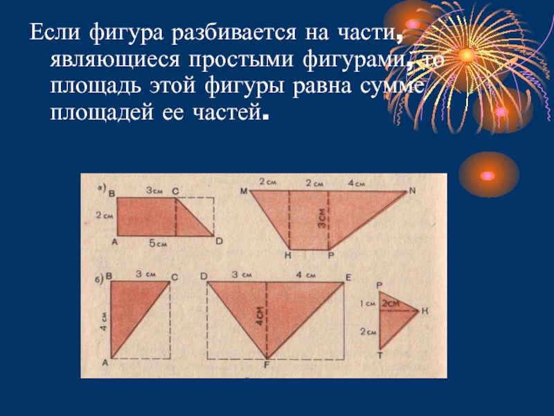 Слайд 4Если фигура разбивается на части, являющиеся простыми фигурами, то площадь этой